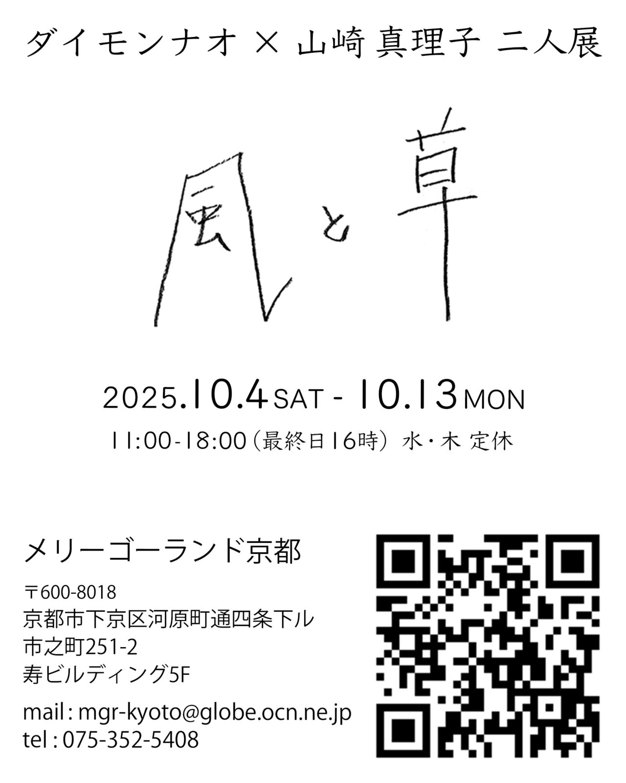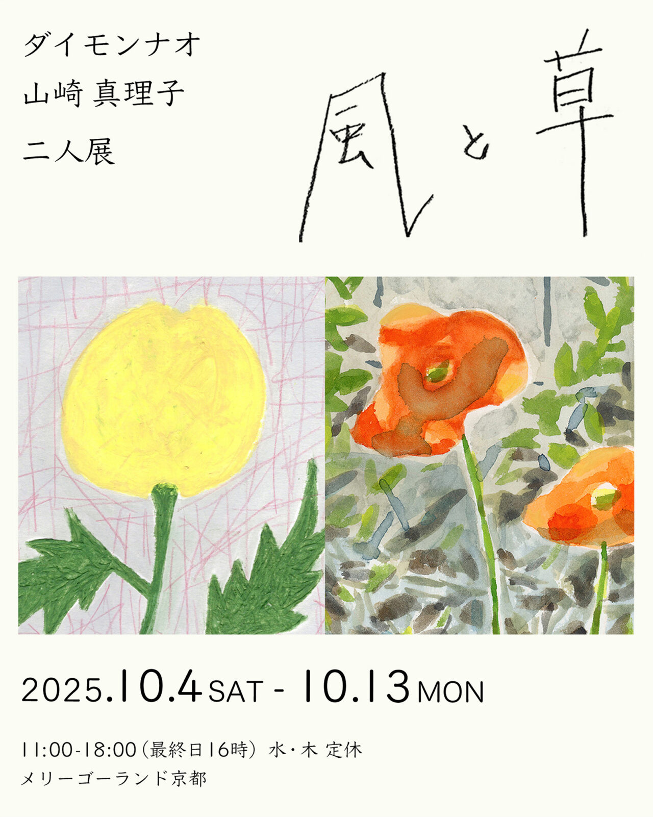 10月4日(土)から京都・河原町のメリーゴーランド京都さんでイラストレーターダイモンナオさんとの二人展『風と草』を開催します。今回の展示は風景と植物をテーマに制作しております。