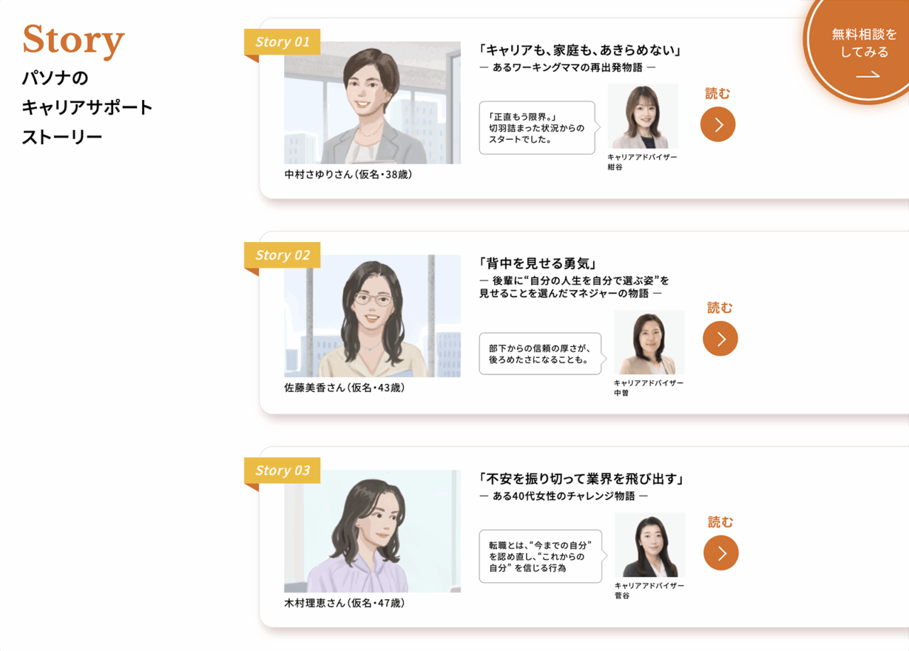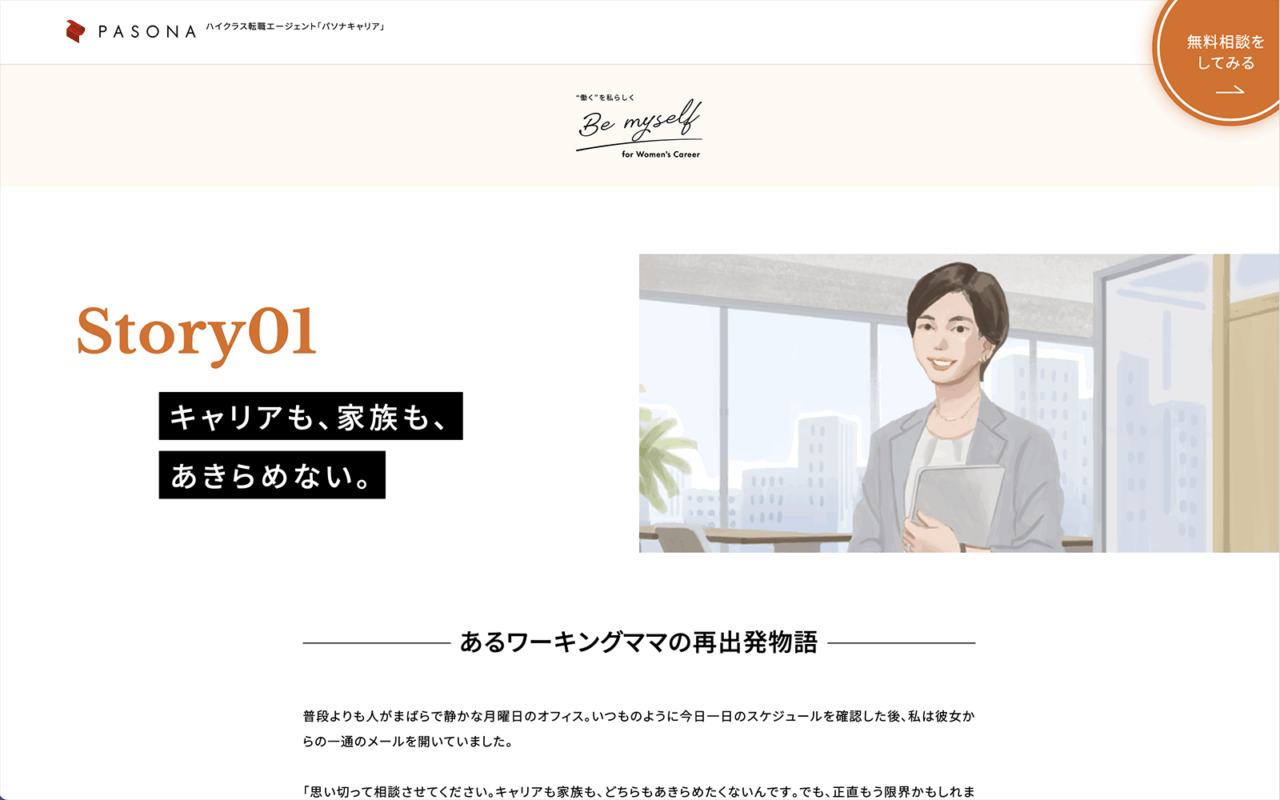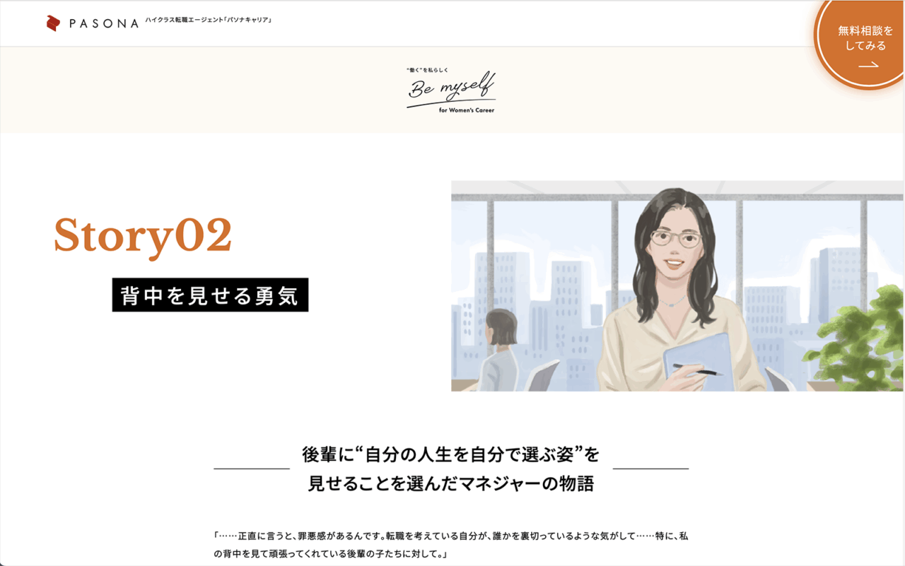 ハイクラス転職エージェントのパソナキャリアさんが展開する女性向けサイト『Be Myself』に5名の女性ペルソナのイメージイラストを描かせていただきました。